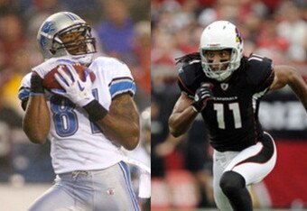 | (Calvin Johnson and Larry Fitzgerald are both poised to have great seasons. One difference, Calvin Johnson has Matthew Stafford, while Larry Fitzgerald is going to be working with either Kevin Kolb or John Skelton. Photo Courtesy of www.bleacherreport.com) |